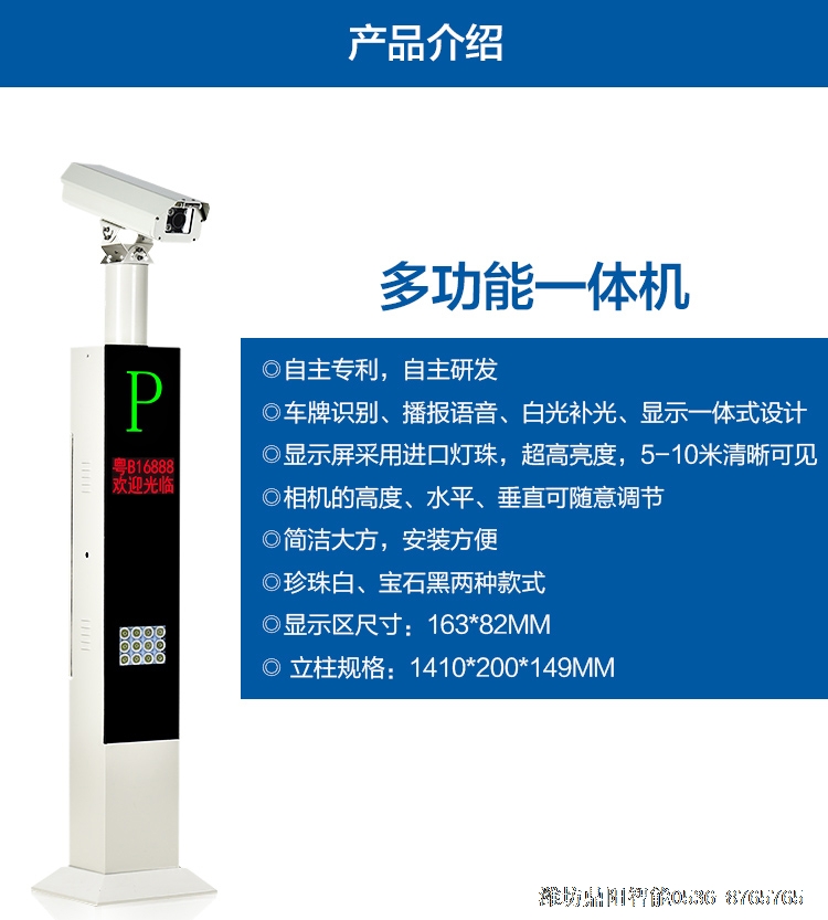 出入口安装车牌自动识别摄像机,相机内自带识别算法,内置多核CPU芯片,识别率高,识别速度快,性能稳定。有强光抑制,亮度补偿等功能,确保设备能更好的适应不用地域不同场所。采用分体式高亮度可控式LED补光灯,保证在恶劣天气、光线不足情况下仍能正常抓拍、正常识别,语音报播功能等。系统集成200W像素高清摄像机,能大大提高车牌识别率。对临时车自动车牌识别,根据进出场时间进行收费,无需取卡,车辆可无障碍出入停车场,为用户提供了一种崭新的服务模式。